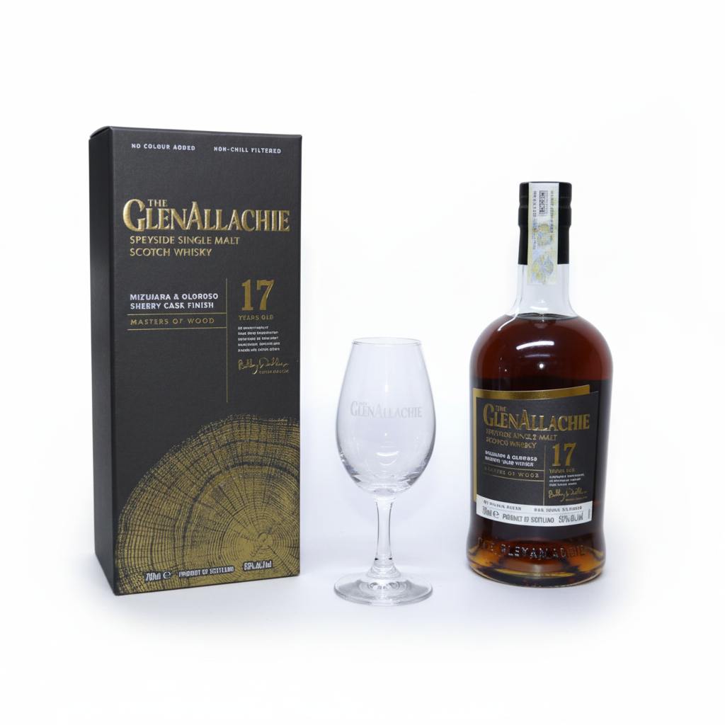 Whisky Glenallachie Mizunara & Oloroso Sherry Cask Finish 17 Ani 50% 0.7L, Pahar Glencairn Copita Cadou