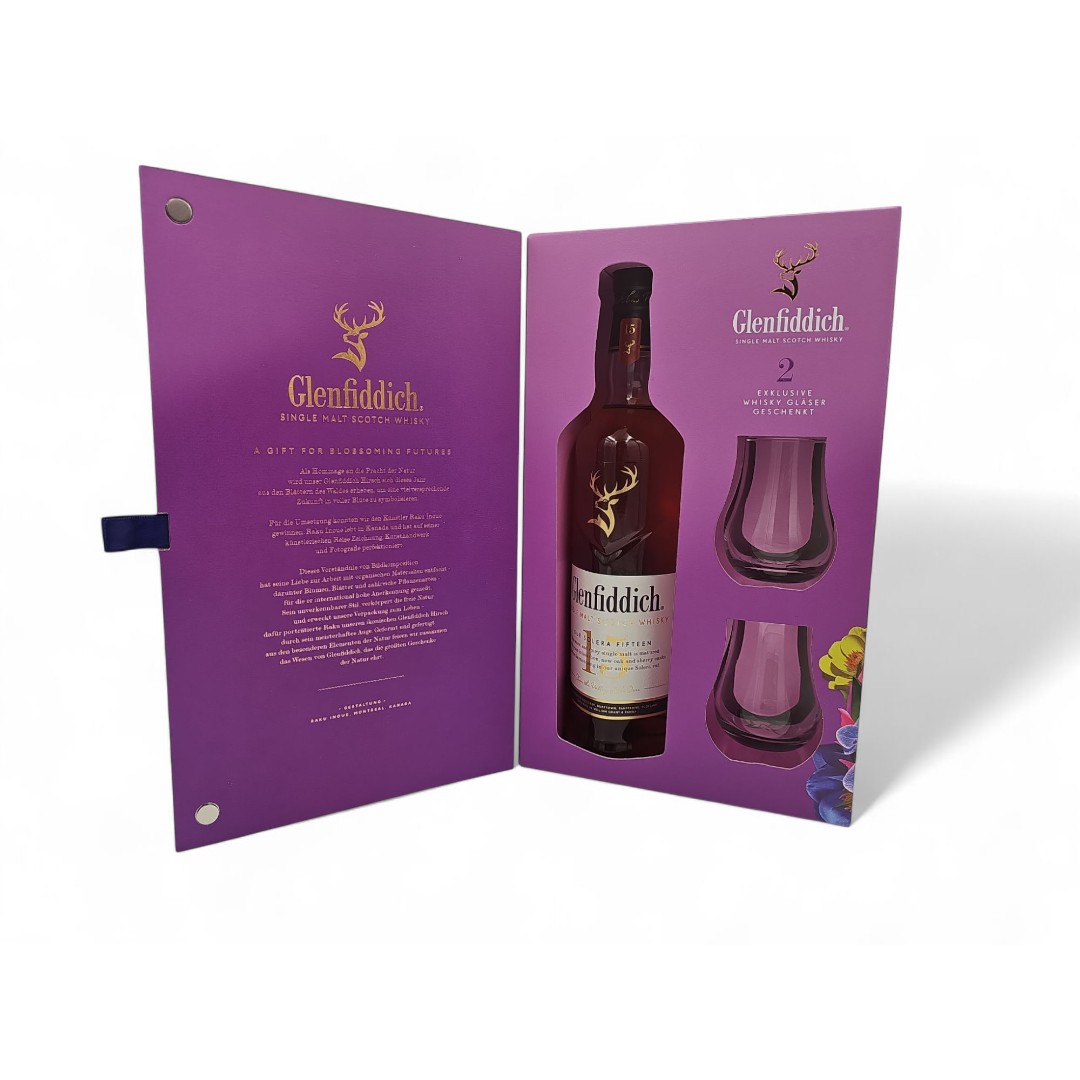 Glenfiddich 15 Ani Small Batch cu 2 pahare 40%, 0.7L