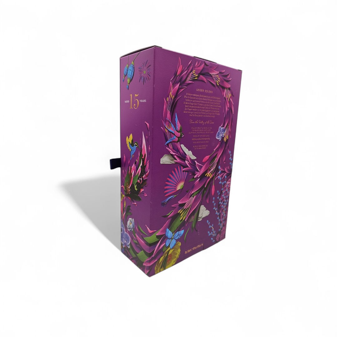 Elegantul sortiment Glenfiddich 15 ani este învechit folosind metoda Solera, care presupune amestecarea mai multor butoaie de băutură cu vârstă diferită într-un singur recipient. Băutura este învechită în butoaie din lemn de stejar european folosite anterior pentru sherry şi în butoaie noi din lemn de stejar european, folosind metoda Solera, care, deşi este utilizată din ce în ce mai rar, reprezintă o garanţie a calităţii produsului finit. Alambicul Solera nu este niciodată golit complet. El este păstrat pe jumătate plin cu whisky încă din anul 1998. Acesta este secretul single malt-ului propus de Glenfiddich.