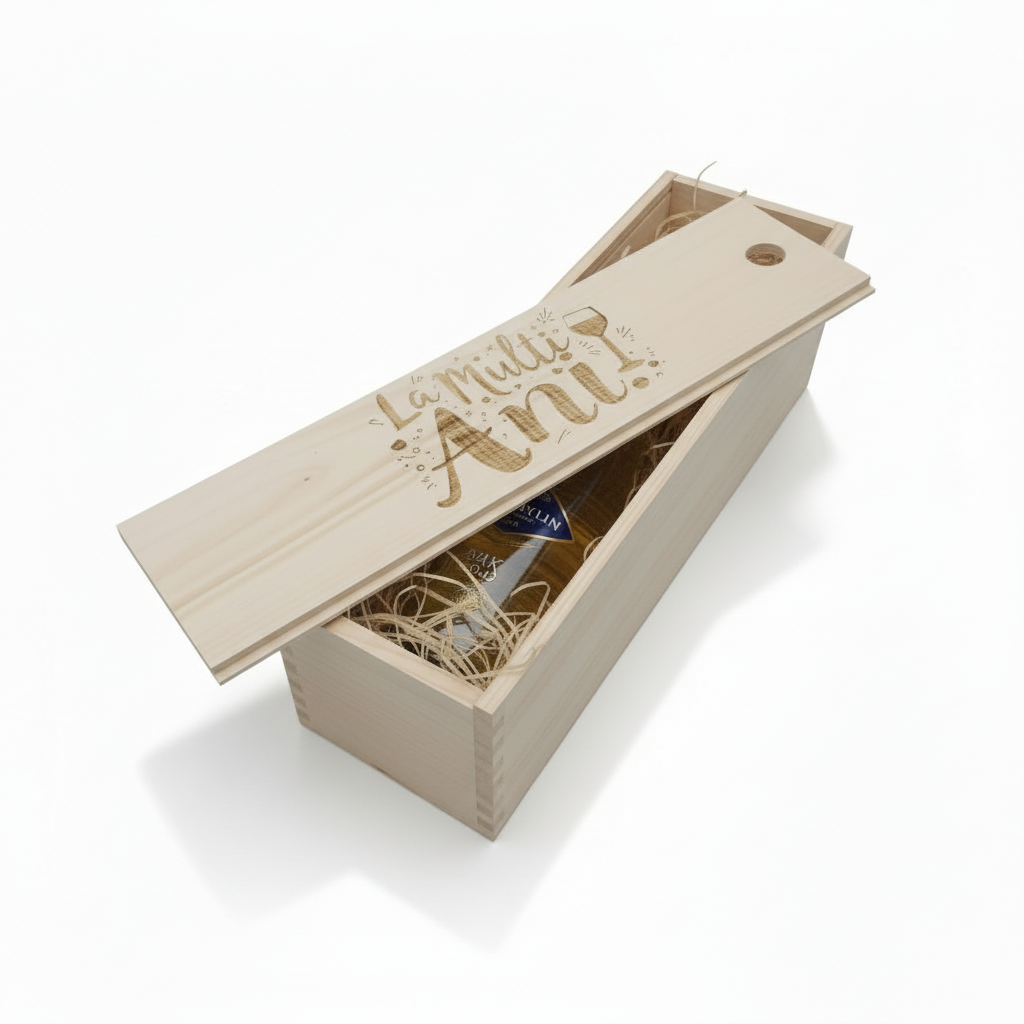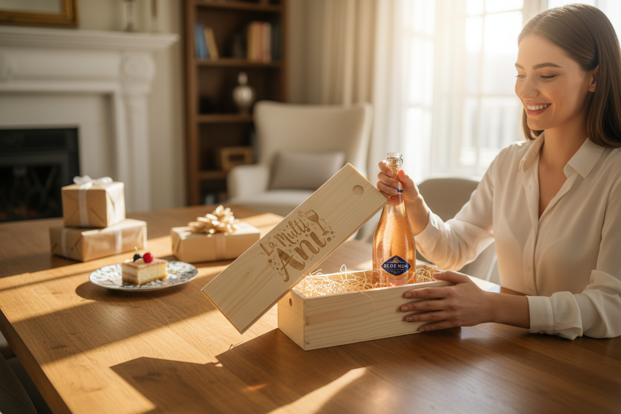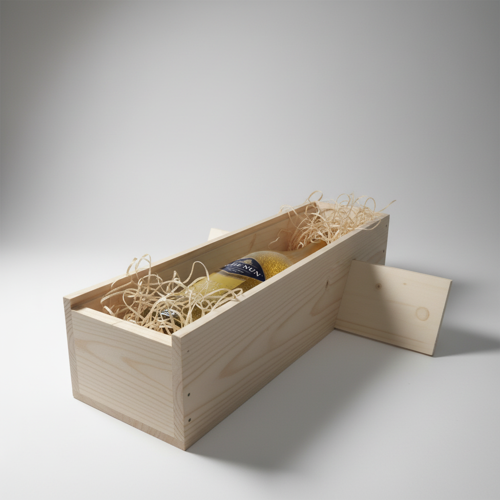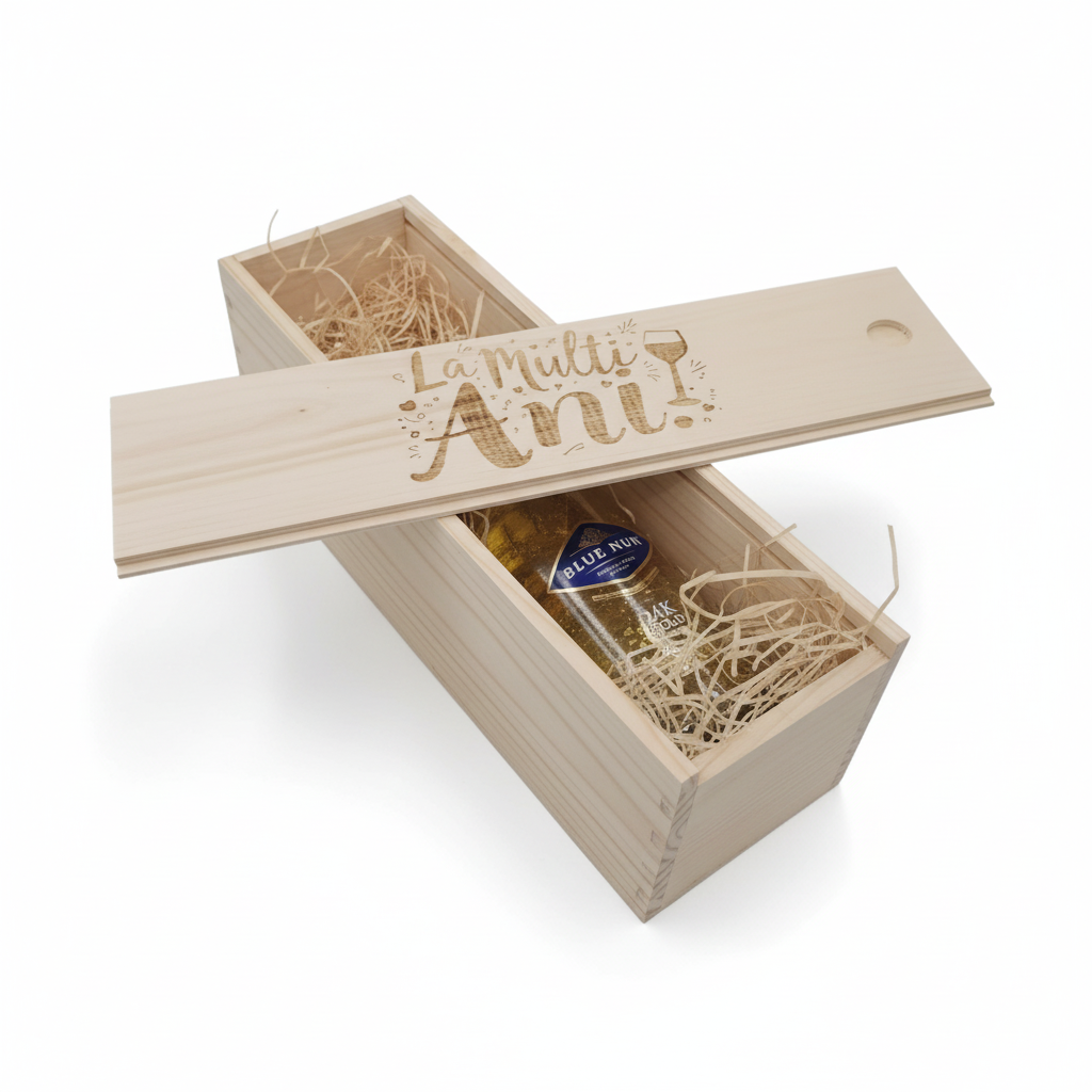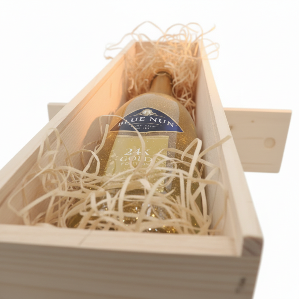Pachet Cadou Vin Spumant Alb Blue Nun Gold 24 K Edition 11%, Cutie Lemn Personalizata 0.75L