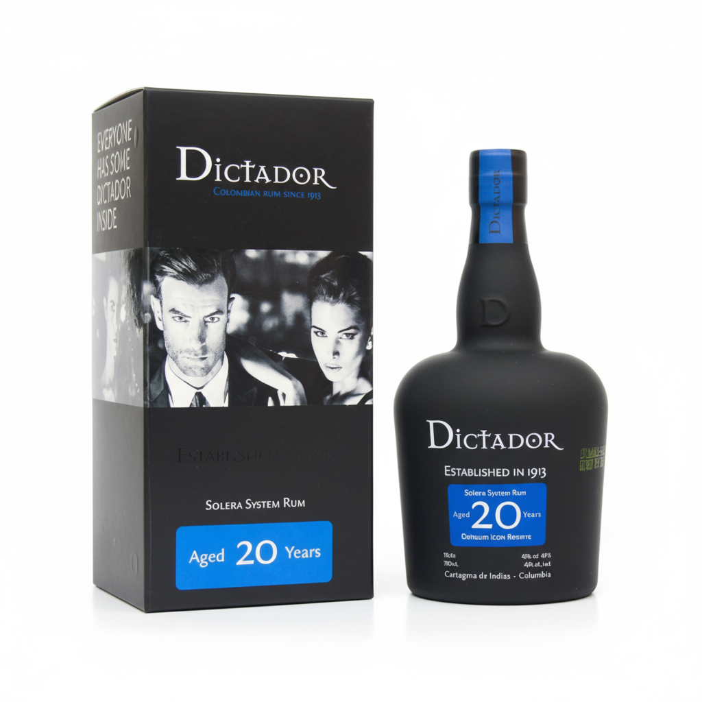 Dictador Colombian Rum 20 Ani este un rom columbian premium, distilat din sucul pur de trestie de zahăr și maturat timp de 20 de ani în butoaie de stejar prin metoda Solera. Acest proces unic îmbină romuri de vârste diferite pentru a crea un elixir rafinat cu un buchet complex și arome bogate de caramel, vanilie și cireșe Morello. Dictador 20 Ani reflectă măiestria distilării columbiene, oferind o experiență gustativă catifelată și intensă, apreciată la nivel mondial.