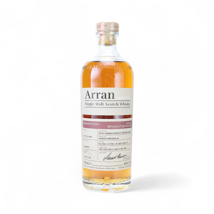 „Remnant Renegade” este prima imbuteliere din aceasta editie. Este o imbinare a unei selectii de butoaie ramase – Hogsheads Ex-Sherry, Butts Ex-Sherry si Butoaie Ex-Bourbon din portofoliul Arran, intre anii cativa dupa inceperea distilarii si pana in 2017. Selectate special si amestecate de Managerul de la Distilerie, Stewart Bowman, purtand pecetea sa de aprobare. Distilata si maturata la Lochranza.