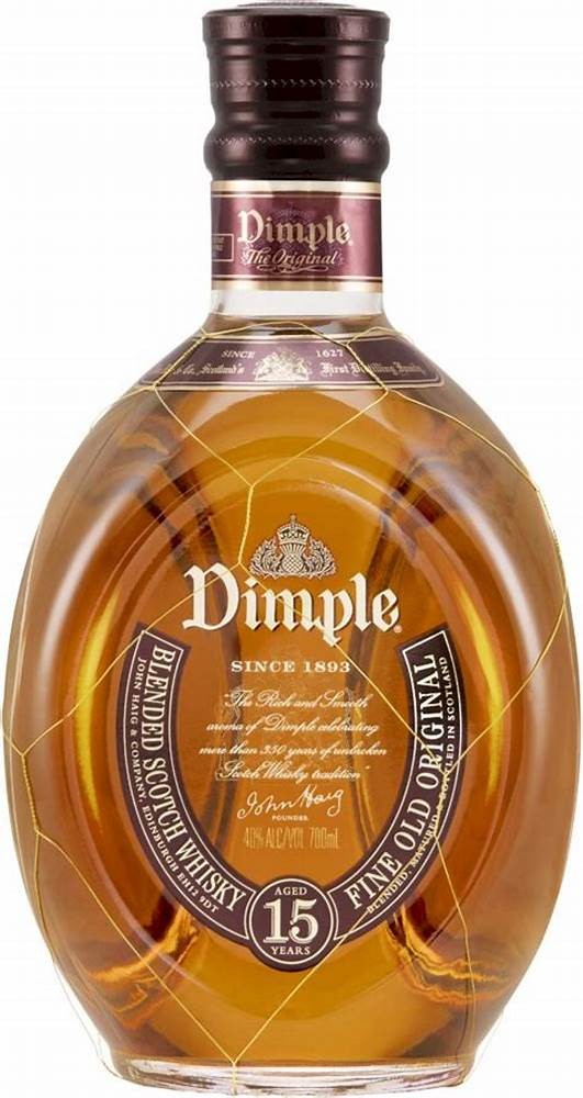 Dimple Blended Whisky se remarcă prin buchetul său autentic, care reflectă o istorie de 350 de ani, dar şi prin forma deosebită a sticlei învelite în plasă din sârmă. Designul a fost brevetat în 1958, în Statele Unite, fiind conceput iniţial pentru a preveni spargerea sticlei în timpul transportării whiskyului pe mare. Dimple 15 ani este compus dintr-un număr mare de malţuri, care mai de care mai deosebite şi include whisky distilat de Glenkinchie şi Linkwood. Tradiţia creării acestui blend a fost păstrată cu sfinţenie din generaţie în generaţie, astfel că gustul său a trecut testul timpului, fiind extrem apreciat şi astăzi în toate colţurile lumii.