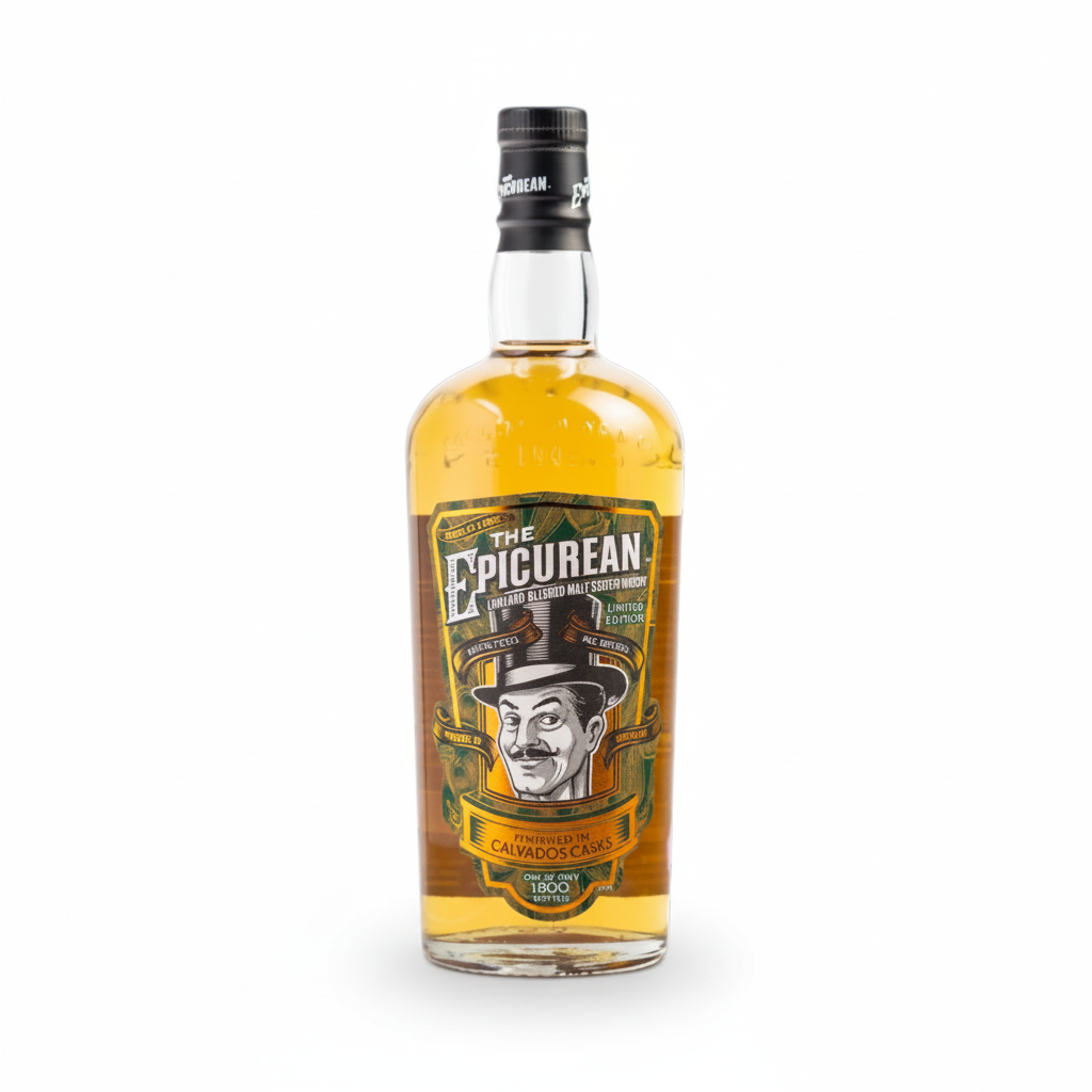 Whisky-ul Epicurean Calvados Cask Finish 48% 0.7L este o ediție limitată Douglas Laing, foarte apreciată pentru notele sale de măr verde, pară și caramel, rezultate din finisarea în butoaie de Calvados.