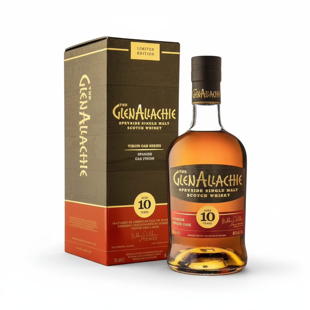 Călătoria GlenAllachie 10 Ani Spanish Oak, începe în inima Speyside-ului, unde butoaiele de stejar american ex-bourbon pregătesc spiritul pentru o întâlnire unică cu stejarul spaniol din munții Cantabria. După 18 luni petrecute în butoaie virgin din Quercus Robur, whisky-ul capătă o profunzime ce îmbină dulcețea intensă cu condimentele subtile și aromele de fructe uscate.