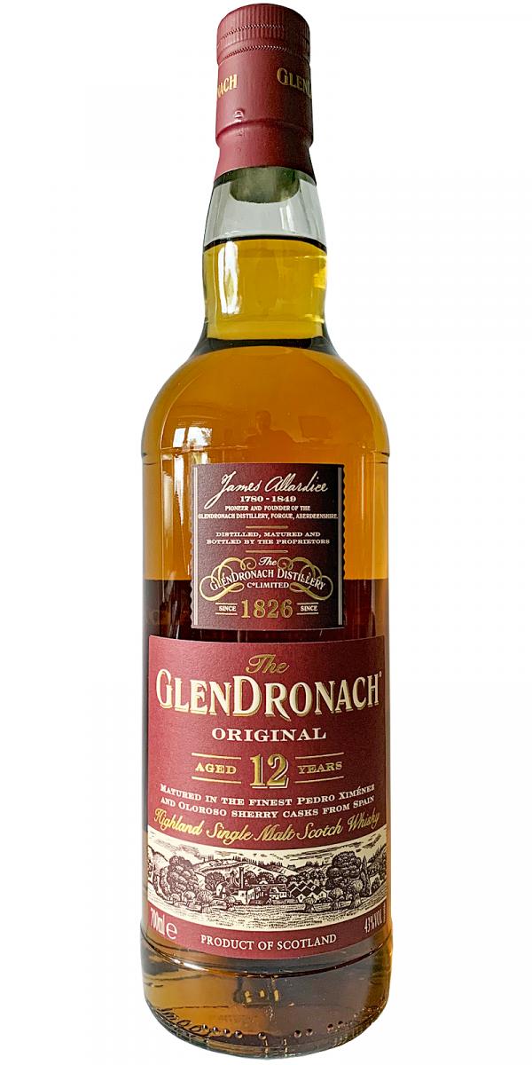 Distileria GlenDronach este cunoscută de peste 200 de ani pentru specificul sortimentelor single malt învechite în butoaie de sherry. Glendronach 12 ani este maturat timp de cel puţin 12 ani într-o combinaţie de butoaie de sherry Pedro Ximenez şi sherry Oloroso atent selecţionate, de unde împrumută note bogate de fructe şi condimente, conturând un buchet complex şi nuanţat. Single malt-ul nu este filtrat la rece, are o culoare naturală şi un profil aromatic bogat, frumos echilibrat. Sortimentul se adresează celor care preferă să savureze un whisky captivant, sincer şi elegant.
