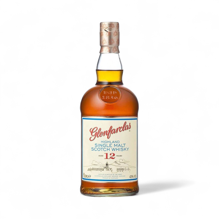 Glenfarclas 12 Ani este maturat exclusiv timp de 12 ani in butoaie Sherry, are o culoare naturala frumoasa si este imbuteliat la 43% tarie alcoolica.