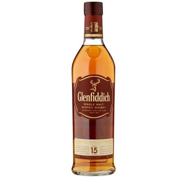 Glenfiddich Single Malt de 15 ani este superior si mai nobil decat versiunile populare blended, este considerat „comoara fabricii”.