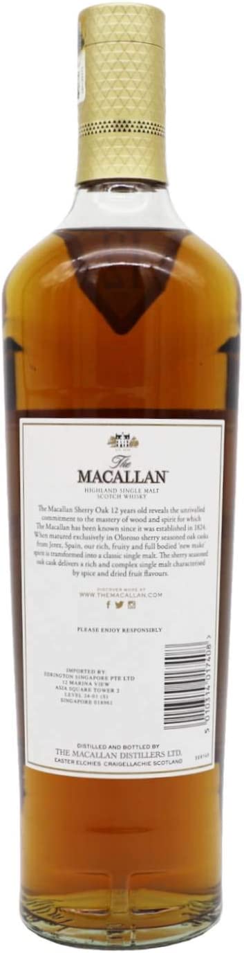 Macallan Sherry Oak 12 ani se numără printre cele mai apreciate sortimente din grupa sa de vârstă din lume. Pentru gama Sherry Oak, producătorii folosesc butoaie din lemn de stejar asezonate cu sherry importate din Spania, acestea fiind cele mai costisitoare tipuri de butoaie folosite pentru maturarea sortimentelor de scotch whisky.